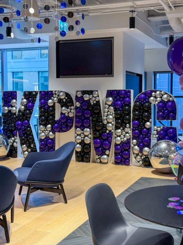 Custom balloon decor for offices and lobby spaces, from seasonal installs to branded displays that elevate everyday environments.