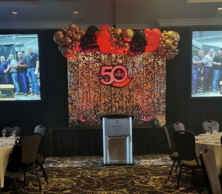 Semex marked its 50th anniversary with a networking event at its Global Headquarters in Guelph. The goal was to create a polished corporate look that still felt celebratory—and to build a few strong photo moments guests would naturally gravitate toward.